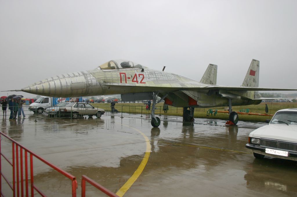 Esta última imagen me ha parecido muy interesante. Delante del PAK FA se puede ver la parte delantera de un Flanker. Parece el P-42, un Su-27 modificado para batir records. Podría tratarse de una plataforma para hacer pruebas con la cabina o asientos eyectores.