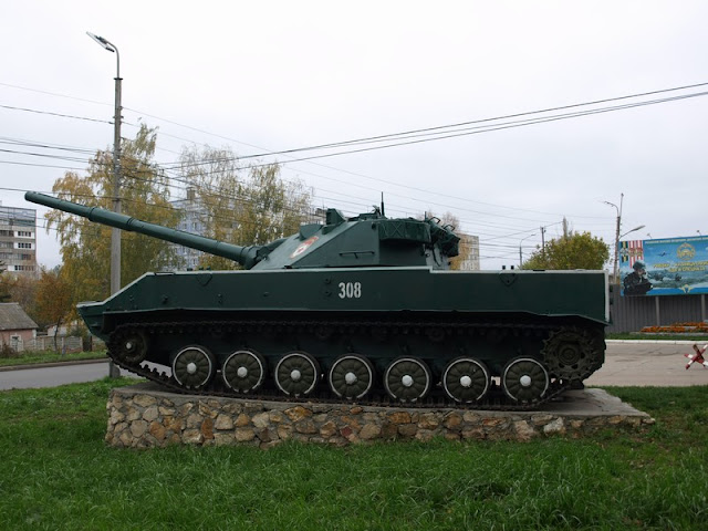En la ciudad de Ryazan, donde tiene su sede la Escuela Superior de las Tropas Aerotransportadas, se puede ver este Sprut de monumento. Parece que fue instalado hace poco -no tengo constancia de ninguna noticia al respecto-. Viendo las ópticas del vehículo se puede ver que pertenece a las primeras series - las más recientes disponen de cámara térmica y una dirección de tiro modernizada.
